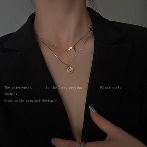 复古人像十字架项链双层长款女简约气质锁骨链INS性...