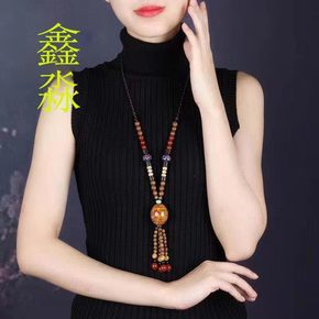 民族风女项链长款毛衣链复古百搭大气简约陶瓷珠配饰吊...