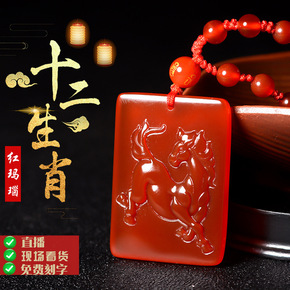 天然红玛瑙吊坠十二生肖护身符转运挂件本命年属马兔龙...