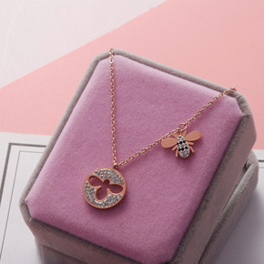 钛钢不掉色镂空蜜蜂项链简约精致时尚镶钻毛衣链抖音批...