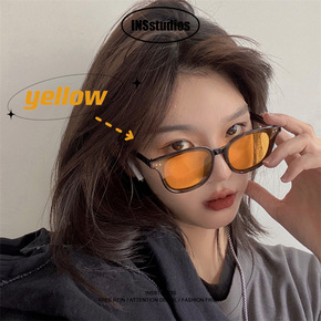 潮流潮牌嘻哈街头复古橘黄色网红太阳镜眼镜男女潮项链...