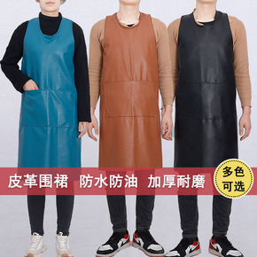 PU皮革围裙防水防油耐磨家用厨房男女水产工作服背心...