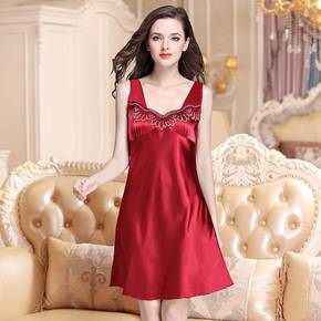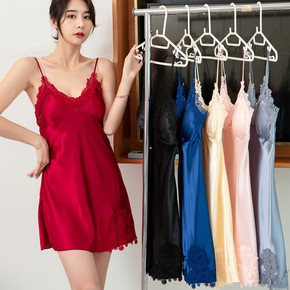 跨境款 春夏季新款 水溶花睡裙带胸垫女人性感冰丝裙...