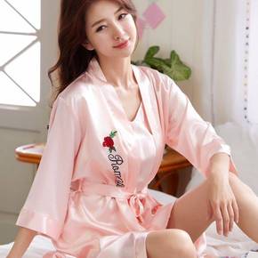 P3822新款韩版女士睡裙两件套冰丝绸性感吊带睡裙...