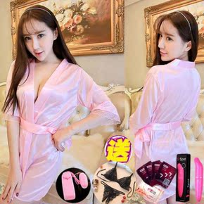 前纽扣喇叭裙摆修身短裙性感睡裙丝绸蕾丝女情趣情调风...