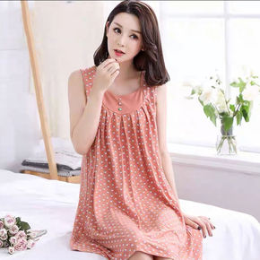圆点睡裙女春夏冰丝薄款睡衣性感纯欲带胸垫蕾丝露背中...