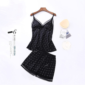 2020新款ins睡衣女春夏冰丝圆点花边吊带裙两件...