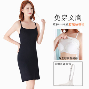 新款吊带背心女带胸垫中长款背心裙莫代尔罩杯一体内搭...