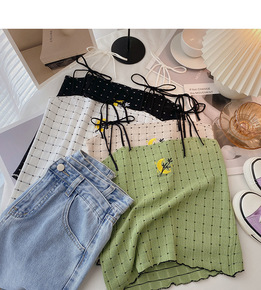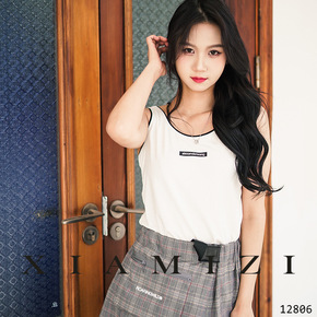 2022夏季新款棋盘格单肩针织吊带背心性感无袖打底...