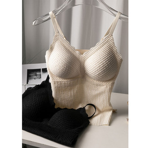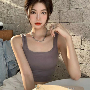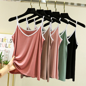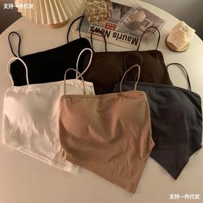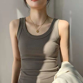 20新款杯罩一体式罗纹吊带背心纯棉舒适带胸垫内衣女...