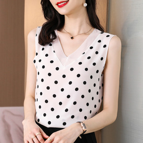 波点背心女内搭2022年夏季新款白色大码胖mm雪纺...