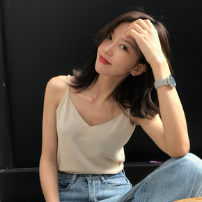 V领针织吊带背心女宽松韩版外穿百搭内搭打底性感泫雅...