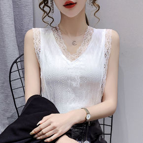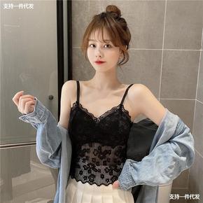 蕾丝网纱吊带背心女外穿镂空性感露背塑形抹胸短款超火...
