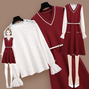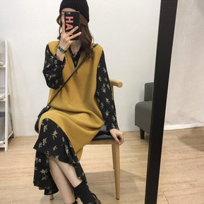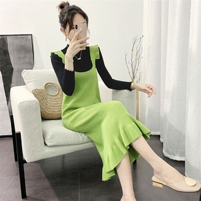 名媛吊带女针织大码新款宽松2020毛衣裙秋装早秋过...