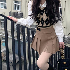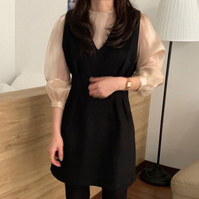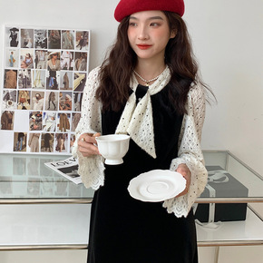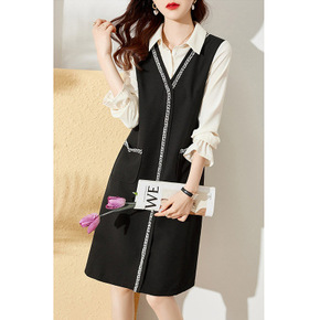 欧货气质小香风衬衫裙女2022春季新款韩版马甲拼接...