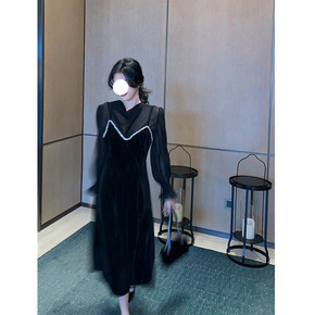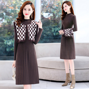 御姐范女士气质连衣裙套装秋冬水貂绒针织马甲长款过膝...