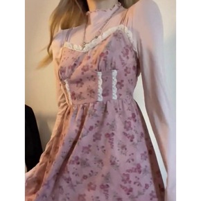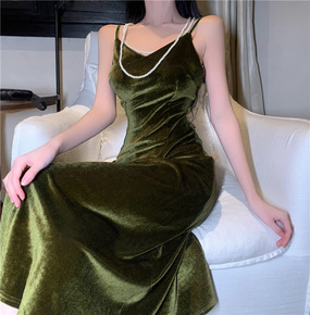 欧美2021秋冬爆品新款女装吊带印花袖套连衣裙亚马...