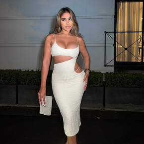 欧美女装2021新款冬季性感镂空束腰修身抹胸吊带连...