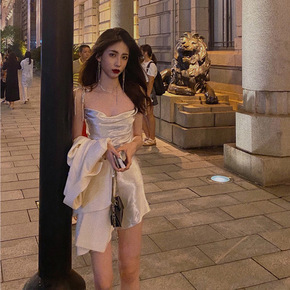 镂空设计感气质低胸辣妹短裙欧美风春季女装纯色露背吊...