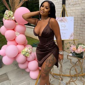 2022春夏新款欧美女装时尚吊带网纱拼接撞色开叉性...