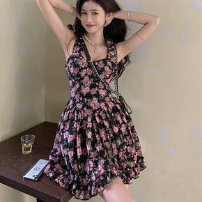 吊带裙 2021夏季新款甜欲风碎花裙 今年新款裙子...