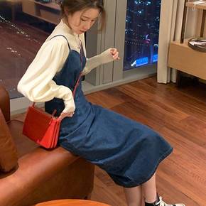 2021秋季欧美设计吊带挂脖新款女装甜辣风连衣裙女...