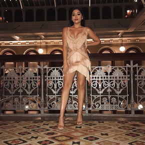 2022跨境欧美吊带网纱V领紧身流苏名媛夜店性感礼...