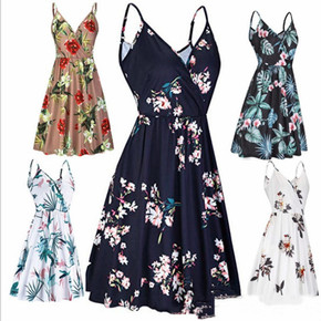 自主研发亚马逊跨境女装吊带连衣裙2021V领性感休...