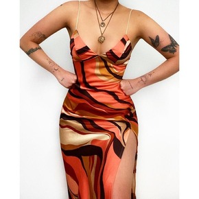 2022欧美性感露背长款修身吊带裙 亚马逊跨境春秋...