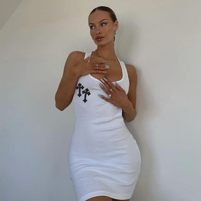 欧美女装2022夏季新品速卖通爆款性感吊带贴花方领...