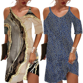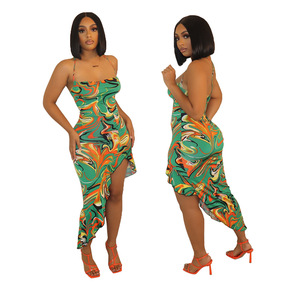 新款印花时尚派对无袖吊带包臀性感连衣裙速卖通亚马逊...
