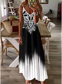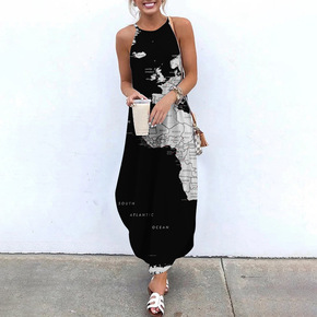 跨境外贸新款 地图 夏季女装挂脖吊带裙下开叉长裙...