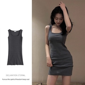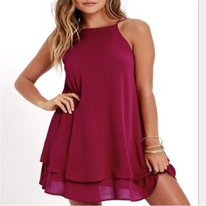 2021年新款夏季欧美女装无袖吊带裙大摆中款连衣裙...