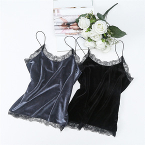 跨境欧美外贸速卖通修身露脐花边坑条密边吊带背心20...