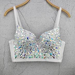 欧美ins时尚个性显瘦亚克力露背炫彩短款外穿吊带背...