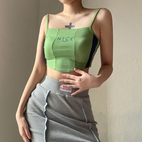 欧美爆品2021秋冬女装新款铁链吊带露脐小背心短款...