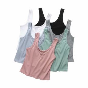 527-21款 韩版修身款螺纹纯色基础款纽扣吊带 ...