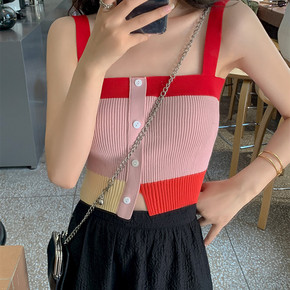 1302#以韩新款纯色吊带背心女外穿内搭修身针织打...