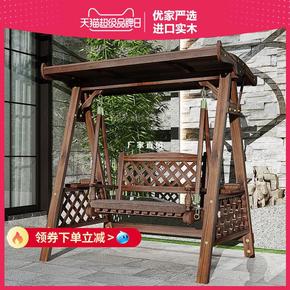 秋千户外庭院实木摇椅室外别墅露台吊椅防腐木荡秋千双...