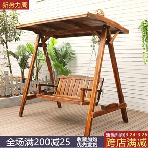 秋千户外庭院实木摇椅别墅露台吊椅腐木荡秋千双人成人...