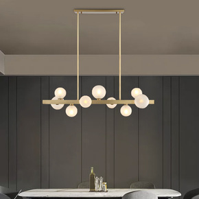 北欧全铜一字长条餐厅吊灯现代简约创意设计师吧台餐桌...
