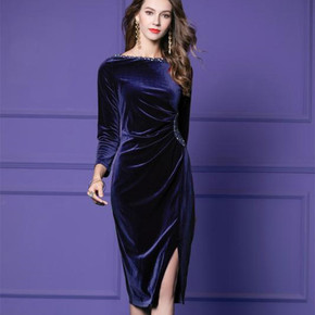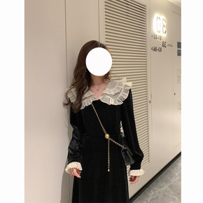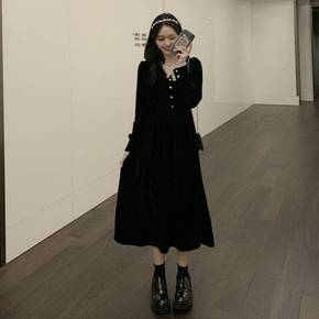 晨妍 夜宴巴黎a字连衣裙丝绒长裙2021秋冬年会新...