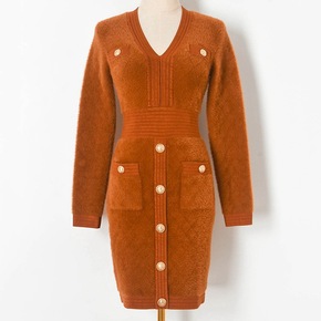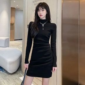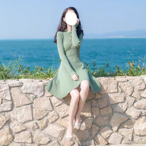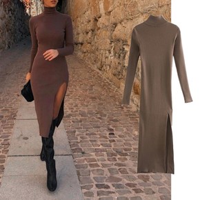 ins欧美风性感开叉针织裙女2021秋冬新款小高领...