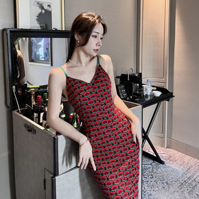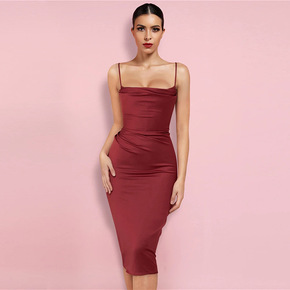 新款跨境外贸欧美性感吊带裙子紧身包臀连衣裙名媛礼服...