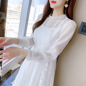 2021年春季新款修身显瘦中长款蕾丝大摆连衣裙...