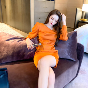 性感低胸收腰吊带连衣裙名媛气质显瘦露背不规则包臀裙...