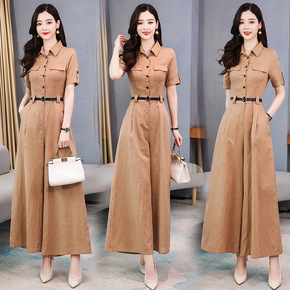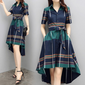时尚女装舒适连衣裤短袖2020夏季中长款配腰带显瘦...
