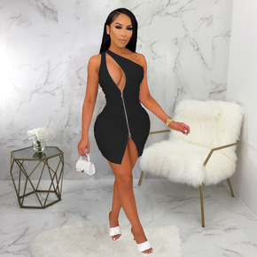2022春季新款欧美女装夜店时尚挂脖露背深V领性感...