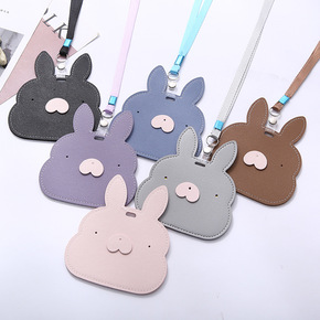 新款可爱小兔子卡套带挂绳横款皮质学生卡套门禁卡公交...