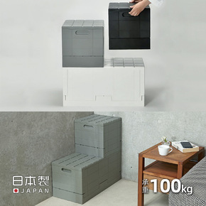 霜山日本进口可折叠收纳箱砖块型可坐书箱大号后备箱储...